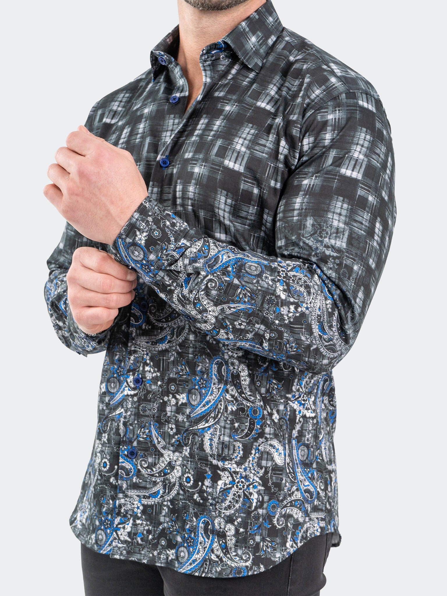 Maceoo stretch dress shirts combine luxury Italian fabrics with engineered fit technology, created by a proprietary algorithm based on data from 30 million people. This unique blend of modern technology and handcrafted style ensures a flattering silhouette for every wearer. Our shirts also feature a special cut that strategically hides extra weight around the waist while accentuating the masculine form, increasing the ratio of the male "V" shape.